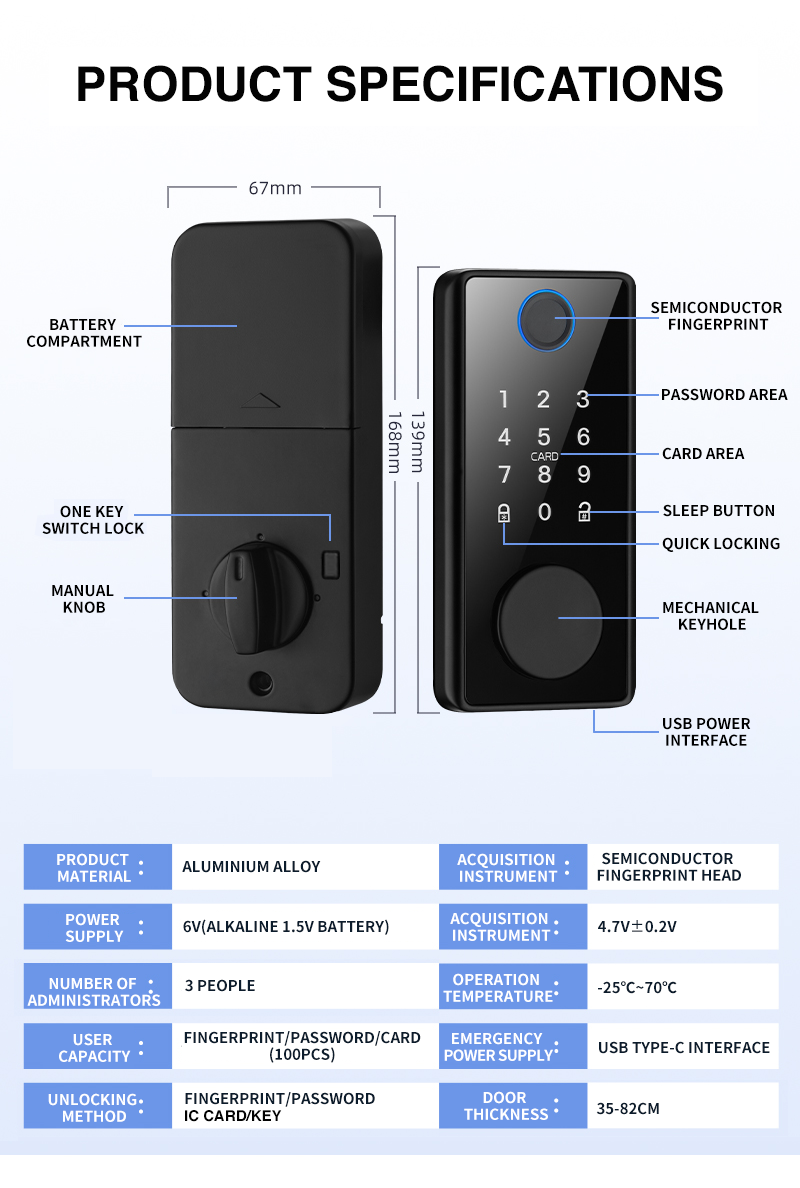 - Fingerprint Recognition: Utilises multidimensional fingerprint recognition technology for precise identification and can register up to 100 fingerprints.